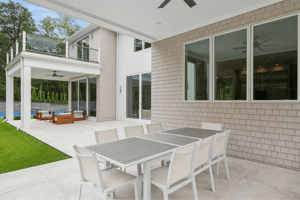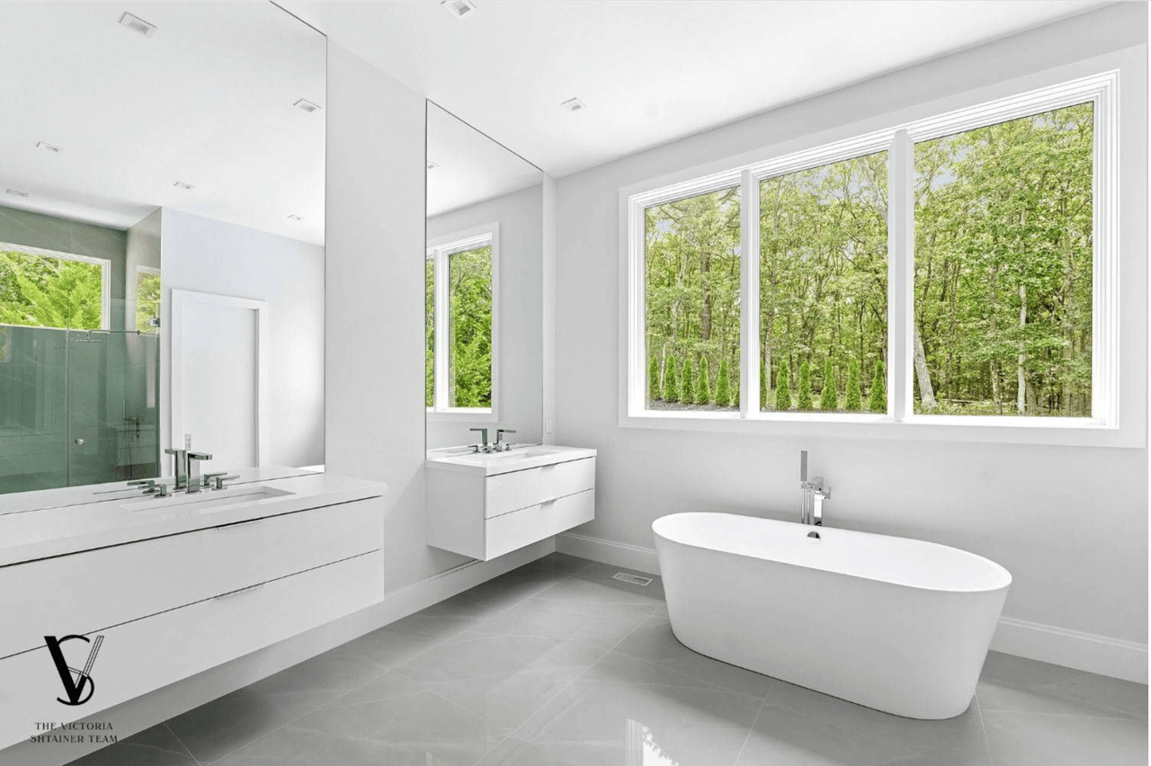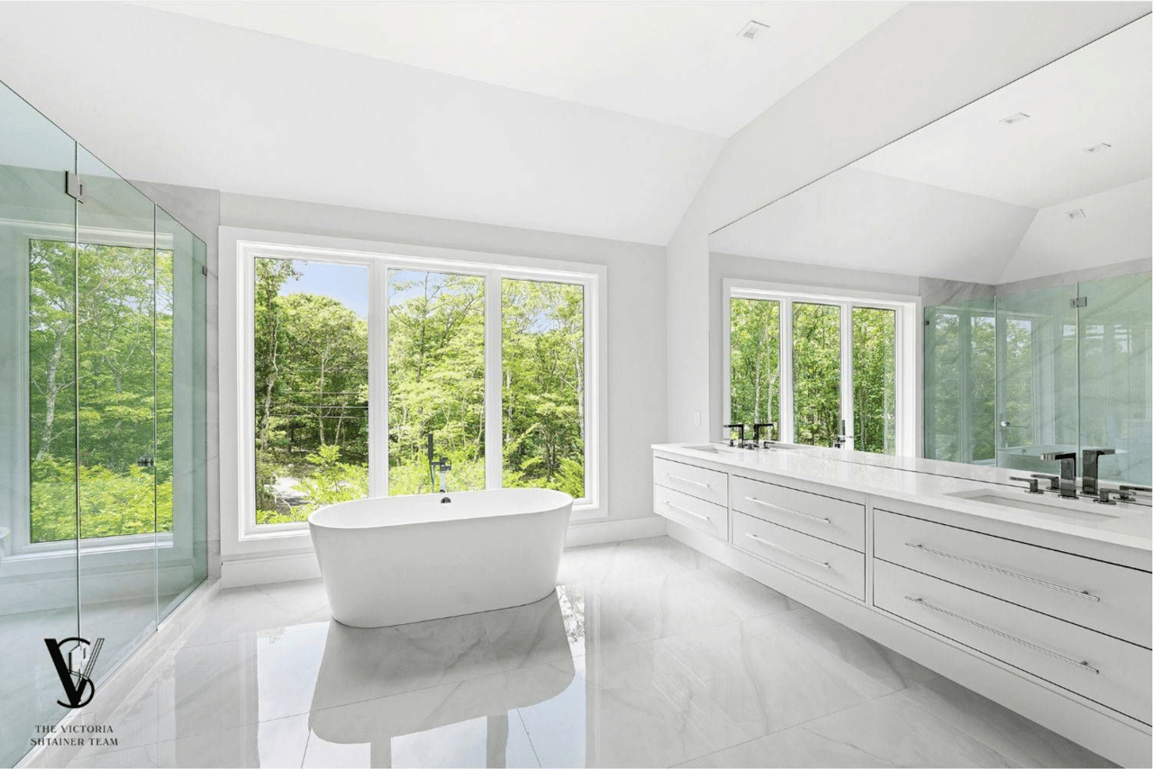 Welcome to 2061 Deerfield Road. Located within a private 16-acre enclave The Reserve at Deerfield in Sag Harbor, this newly constructed residence is one of four custom homes in a limited new development designed by seasoned architects McDonough & Conroy and built by Barsalin Building and Design. Set on 1.61 acres and bordered by more than 10 acres of preserved open space, the property offers modern design, privacy, and resort-style amenities. Spanning approximately 8,769 square feet across three levels, including 2,743 square feet on the finished lower level, the home includes 8 bedrooms, 10.5 bathrooms, an oversized two-car garage, a 20'x40' heated gunite saltwater pool with 8'x8' spa, and a private pickleball court. The main entry features double-height ceilings, a vertical wood accent wall, and clerestory windows that bring in natural light and frame landscaped yard views. Living spaces are enhanced by 11' ceilings, 10' solid wood doors, and an open layout connecting the formal dining area, kitchen, and great room. The kitchen is equipped with a Carrara marble center island, professional-grade appliances by Wolf, Sub-Zero, and Bosch, and a separate full-service prep kitchen. A Carrara marble fireplace adds warmth to the living space, and oversized sliding glass doors and Marvin windows allow for indoor-outdoor flow. The first floor primary suite includes two spacious walk-in closets and an en-suite bath with dual vanity, freestanding soaking tub, and separate shower. Off the kitchen, the entry level is completed with a mudroom featuring built-in closets, a full laundry room, a full bathroom, and a large pantry for storage; all with direct access to the oversized two-car garage and side yard. On the upper level, the primary suite includes two walk-in closets, a spacious en-suite bath with soaking tub and dual vanities, and private access to a 17' terrace that overlooks the landscaped back yard. Four additional guest bedrooms, each with an en-suite bath, and a second laundry room complete this floor. The finished walk out lower level offers two additional guest bedrooms, each with a full en-suite bath. This lower level provides a luxurious amenity space with golf simulator room, media lounge, gym with specialty flooring, sauna, massage room, and a recreation area. Conveniently located between Sag Harbor Village, Water Mill, and Southampton, and minutes away from Noyack Golf Club, this newly completed home offers high-end finishes, a thoughtful layout, and a private setting in one of the Hamptons' most sought-after areas.