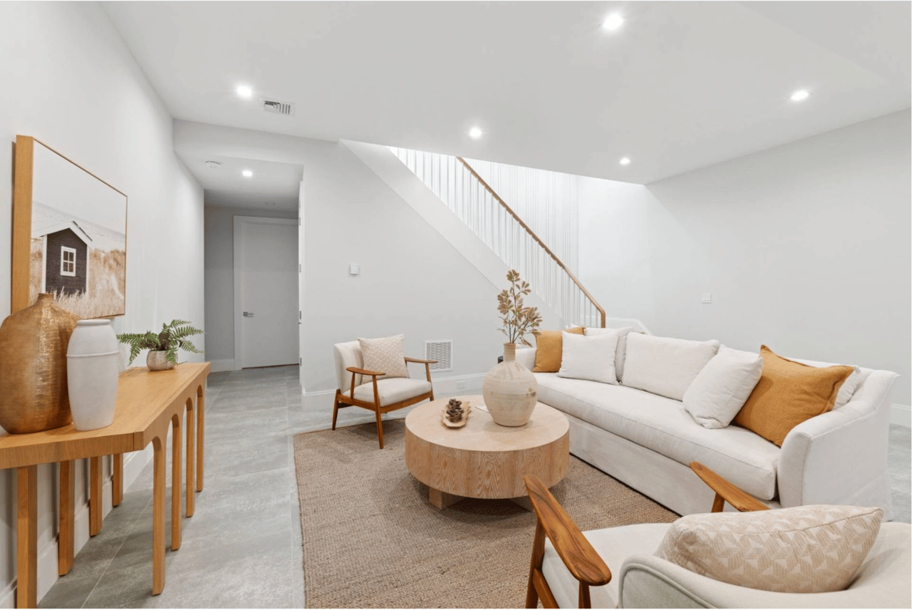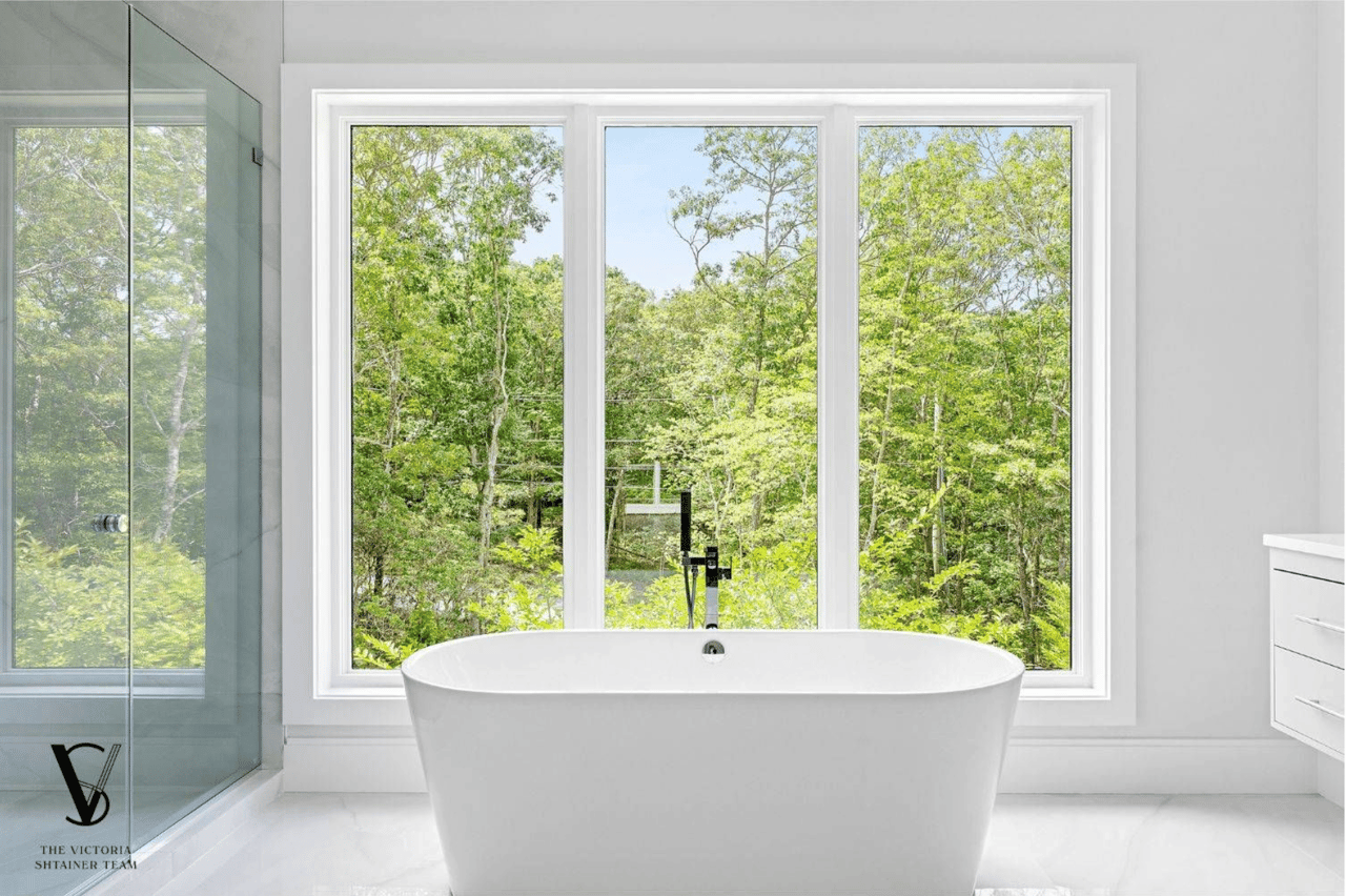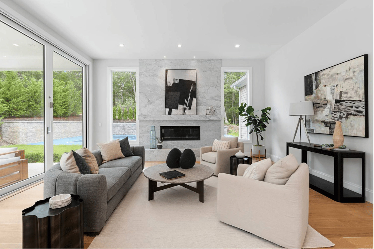 Welcome to 2061 Deerfield Road. Located within a private 16-acre enclave The Reserve at Deerfield in Sag Harbor, this newly constructed residence is one of four custom homes in a limited new development designed by seasoned architects McDonough & Conroy and built by Barsalin Building and Design. Set on 1.61 acres and bordered by more than 10 acres of preserved open space, the property offers modern design, privacy, and resort-style amenities. Spanning approximately 8,769 square feet across three levels, including 2,743 square feet on the finished lower level, the home includes 8 bedrooms, 10.5 bathrooms, an oversized two-car garage, a 20'x40' heated gunite saltwater pool with 8'x8' spa, and a private pickleball court. The main entry features double-height ceilings, a vertical wood accent wall, and clerestory windows that bring in natural light and frame landscaped yard views. Living spaces are enhanced by 11' ceilings, 10' solid wood doors, and an open layout connecting the formal dining area, kitchen, and great room. The kitchen is equipped with a Carrara marble center island, professional-grade appliances by Wolf, Sub-Zero, and Bosch, and a separate full-service prep kitchen. A Carrara marble fireplace adds warmth to the living space, and oversized sliding glass doors and Marvin windows allow for indoor-outdoor flow. The first floor primary suite includes two spacious walk-in closets and an en-suite bath with dual vanity, freestanding soaking tub, and separate shower. Off the kitchen, the entry level is completed with a mudroom featuring built-in closets, a full laundry room, a full bathroom, and a large pantry for storage; all with direct access to the oversized two-car garage and side yard. On the upper level, the primary suite includes two walk-in closets, a spacious en-suite bath with soaking tub and dual vanities, and private access to a 17' terrace that overlooks the landscaped back yard. Four additional guest bedrooms, each with an en-suite bath, and a second laundry room complete this floor. The finished walk out lower level offers two additional guest bedrooms, each with a full en-suite bath. This lower level provides a luxurious amenity space with golf simulator room, media lounge, gym with specialty flooring, sauna, massage room, and a recreation area. Conveniently located between Sag Harbor Village, Water Mill, and Southampton, and minutes away from Noyack Golf Club, this newly completed home offers high-end finishes, a thoughtful layout, and a private setting in one of the Hamptons' most sought-after areas.