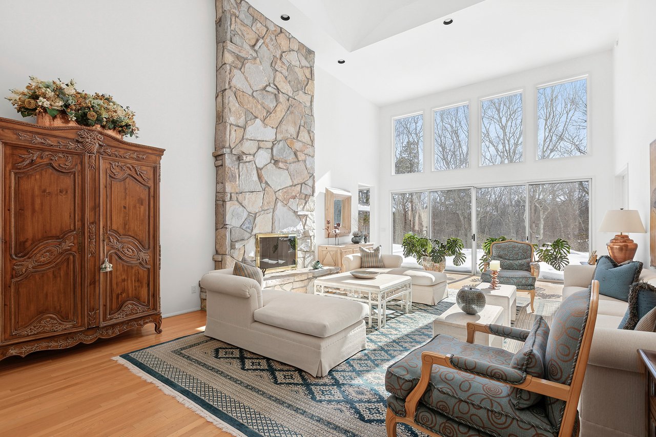 Situated on 1.2 acres along a quiet East Hampton street, this single-level residence offers more than 3,150 square feet of well-balanced living space designed for effortless indoor–outdoor living. The home features four generously sized bedrooms and three and a half bathrooms, all thoughtfully arranged for comfort and ease.