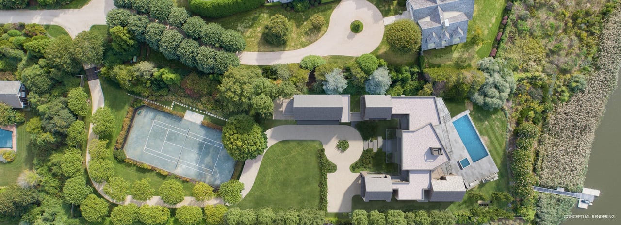 Unparalleled Waterfront Property with Tennis and DockThis 2+ acre property with 147 feet of water frontage is the setting for a proposed modern new construction tour de force. Extensive time, preparation, and customizing has revealed conceptual renderings and proposed plans by renowned architectural firm Bruce Nagel and Partners. Enjoy the current home as it is, or take advantage of this fantastic opportunity to buy and build the home of your dreams at this prime location.Architectural plans soon to be completed with full permits, call for a 12,000 sq. foot breathtaking modern residence with western-facing Bay views. Renderings highlight the abundance of windows, showcasing vistas from almost every room featuring 11 Bedrooms, 7 Baths / 4 Half Baths, an impressive great room, and a state-of-the-art primary suite. Enjoy a waterside pool and spa, 2 attached garages with a golf simulator and playroom above, a tennis court, specimen trees and plantings, and a private dock on Calf Creek. This waterfront property has an extraordinary length and depth that allows for an unparalleled Hamptons estate residence elevated by premier luxury architects from the interior design, building, and landscaping world. A once-in-a-generation property for those wanting something special.Currently, the charming stucco home on site features five (5) bedrooms, four full (4) bathrooms and two (2) half baths, additional bonus space in the basement, outdoor kitchen, screened-in porch, incredible gardens, waterside gunite pool and spa, har-tru tennis court, and detached two (2) car garage with rec room.This rare opportunity is positioned on a quiet street that sees no through traffic and has immediate access to Mecox Bay from the private dock and also at the end of Bay Lane. From the dock, launch kayaks, paddle boards, a motor/sail boat, or jet skis and head over to the ocean through Mecox Bay and settle in at the Mecox “cut”. Mecox Bay is widely acclaimed as one of the most significant coastal resources on the East End. The property is also only 2 miles +/- from Mecox Beach and 1.7 miles +/- to Ocean Road Beach.